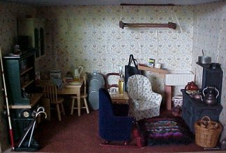 This is set in the 1930s. At the moment I only have the living room, but I hope to get a bedroom set up one day as well. (Many of these houses only had two rooms, though some had three.)
